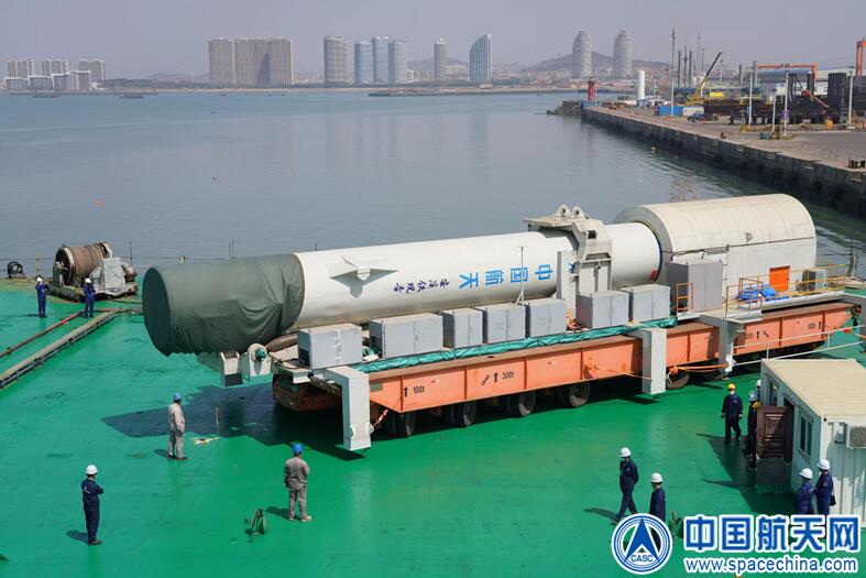 4月25日,航天发展投资市场一院研制的长十一火箭第三次出征海上,搭乘载重量2.5万吨的“泰瑞号”驳船驶离海阳港。在经过550公里的平稳航行后,火箭即将又一次从海上起飞。
