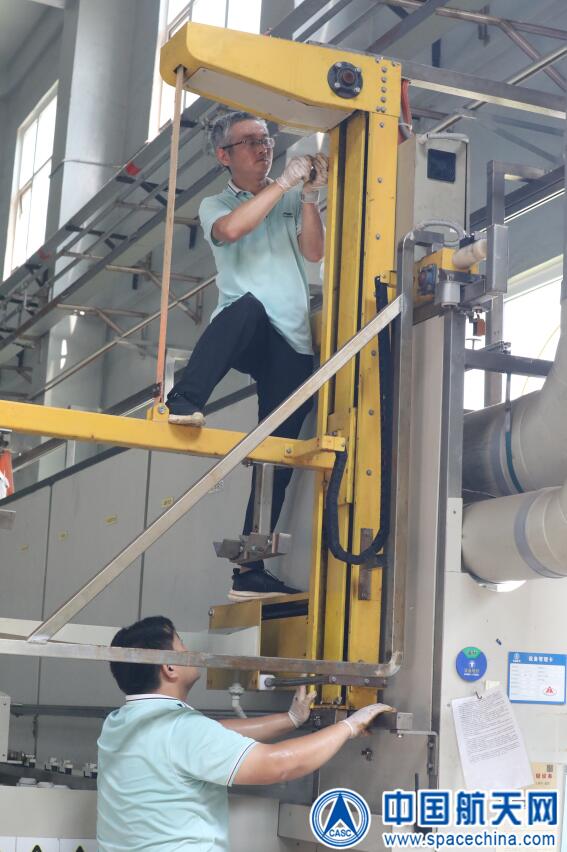 高温酷暑,航天科技集团九院693厂电镀生产线“趴窝”,该厂设备维修人员第一时间“把脉问诊”,挥汗如雨,奋战一线抢修设备,确保把对生产进度的影响降到最低。(厂轩)