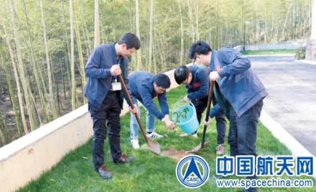 八院806所9室党支部在新落成的测控大楼旁边开展“植下一颗绿树、收获万点希望”植树活动。支部青年种下小树,也种下希望,希望小树苗能茁壮成长,希望航天梦能长成参天大树。 (所轩)