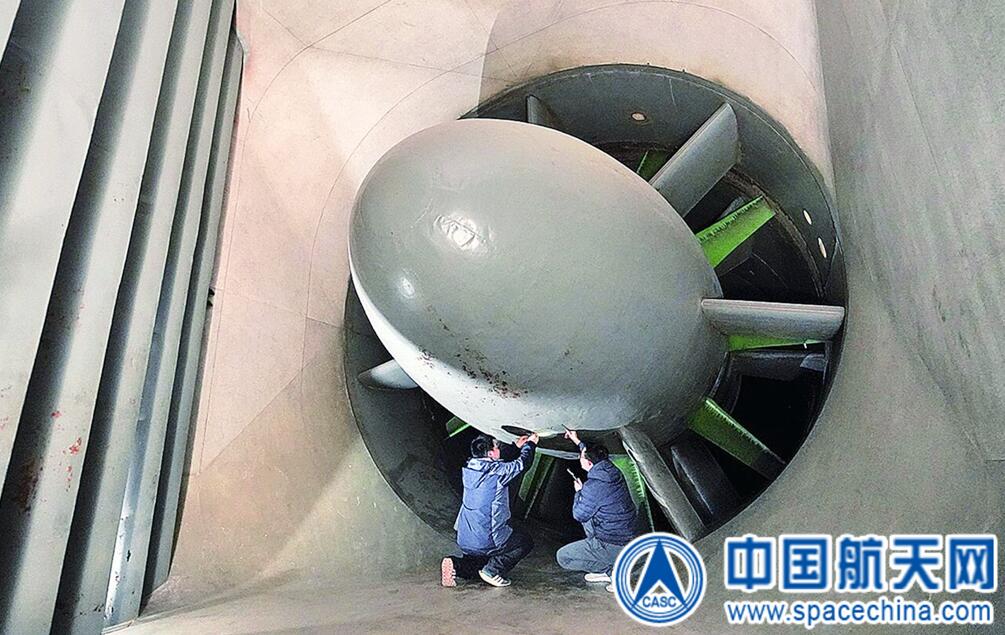 图为党员骨干运维班组正在对低速风洞动力系统风扇叶片进行预检。 宿东 摄