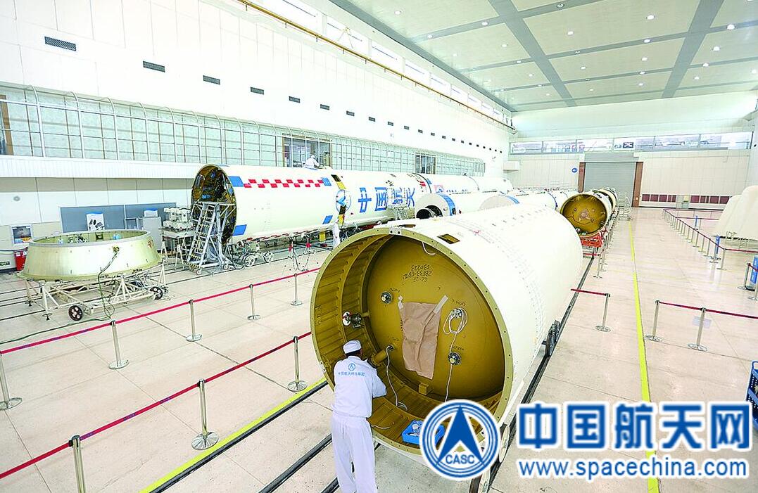 近日,在航天发展投资市场一院211厂总装事业部厂房里,两发长二F火箭同步进行总装、测试,其中长二F遥十八火箭的测试工作预计将于7月底完成。