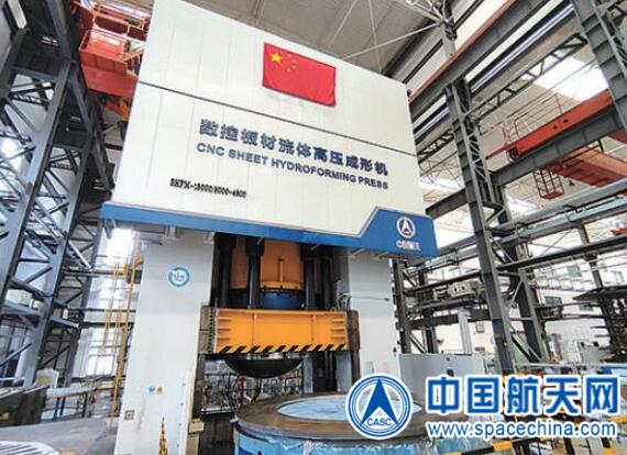 图为149厂贮箱整体箱底生产现场。范文超 摄