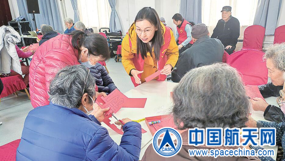 近日,航天科技集团十一院团员青年志愿者开展志愿服务活动,为社区居民提供健康指导、航天知识科普等义务服务。志愿者还来到北京市第三福利院为老人讲解智能手机使用方法,并开展剪纸活动。