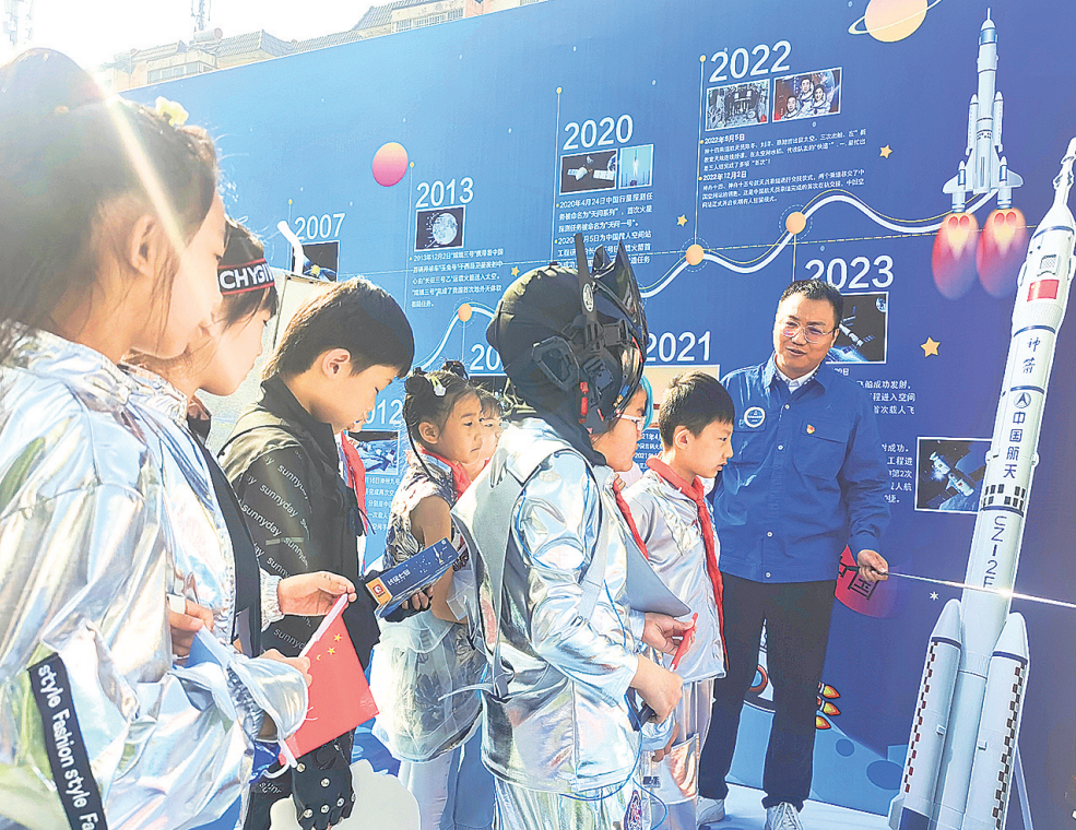 图为刘苏骅为孩子们讲解航天发展历程和航天先辈事迹。行鹍鹏 摄