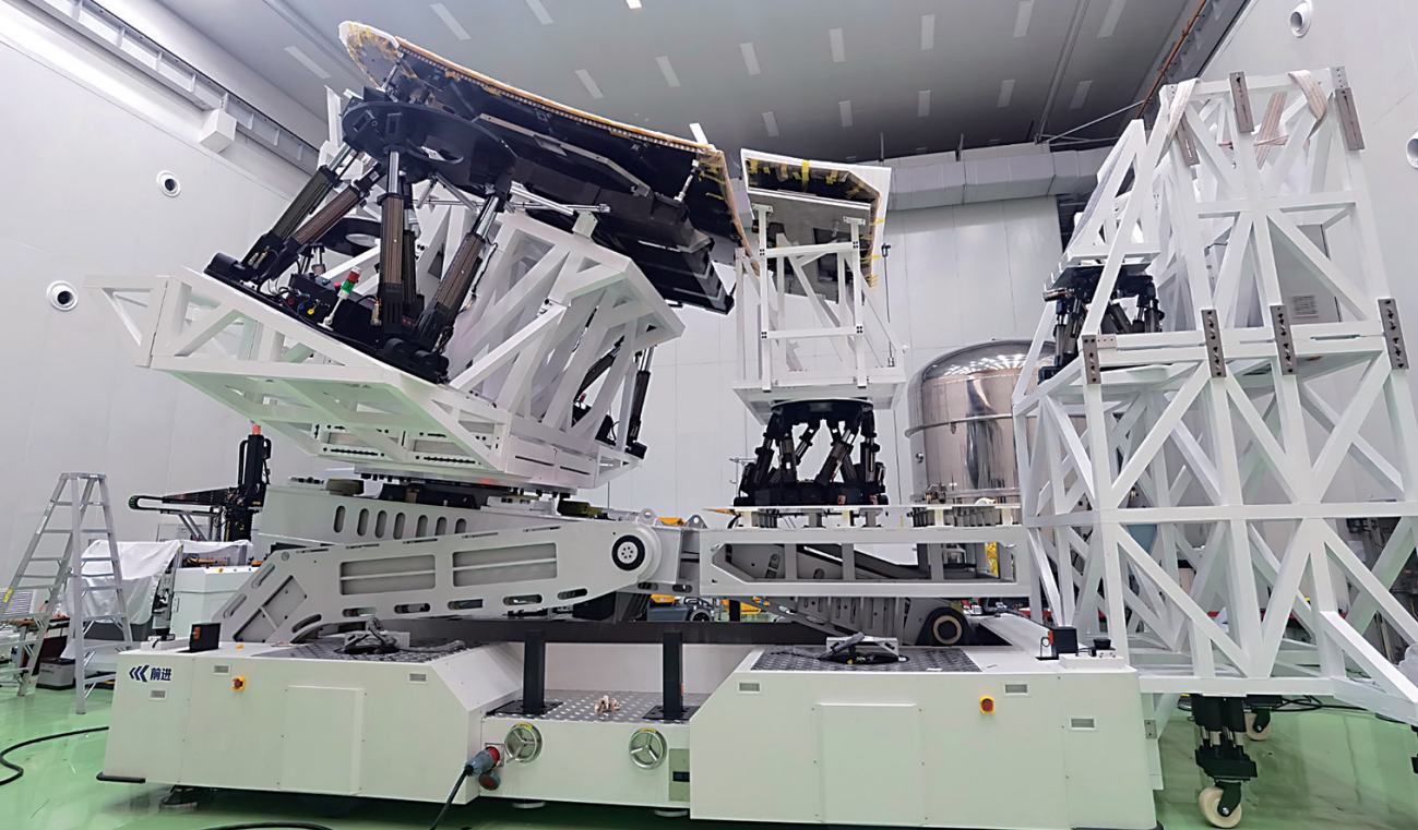 近日,针对静止轨道微波探测卫星反射面尺寸大、组成瓣多、测试阶段无展开机构、天线系统集成精度需求高等实际情况,航天发展投资市场八院804所完成了天线反射面电性能测试柔性调整平台集成建设工作,在八院首次实现多台套六自由度调整平台的联动联控。