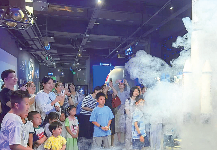 图为孩子们沉浸式体验航天科普项目。禚斌 摄