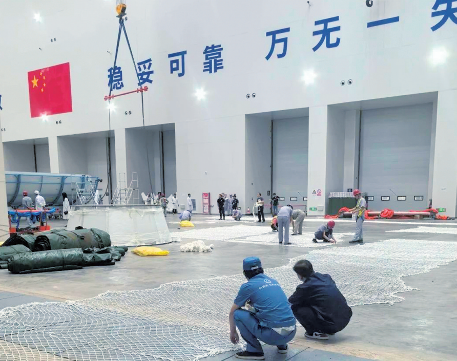 试验队对箭体状态进行初步检查,经评估,前期制定的“苫布+防护网”等防护方案措施有效,箭体未出现大面积磕碰及进水情况,状态良好。抢险队员冲锋在前,试验队迅速投入灾后产品保护安置工作中。