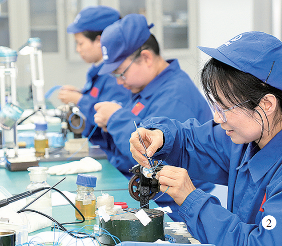 同属于精密制造类生产,走进微特电机事业部,自动嵌线机、自动热套机、转子动平衡机、磁钢自动粘接机等设备列阵整齐、产线顺畅。该产线的建设不仅攻克了电机定子、转子装配这一曾经的手工操作工序质量薄弱环节,也为大批量产品交付增强了“数智”保障。近两年,该事业部还不断攻关,让更多不同型号的电机得以“上线”