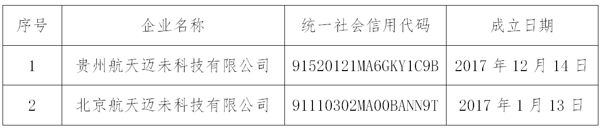 经我集团核实,贵州航天迈未科技有限公司及其全资子公司北京航天迈未科技有限公司(以下简称迈未公司)均非航天发展投资市场下属企业。迈未公司与我集团无任何隶属关系,其一切行为均与我集团无关。对于其以我集团下属企业的名义开展业务等行为,请社会各界注意防范风险,避免造成损失。